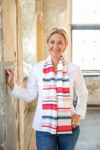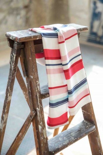 Dubbelsydd sidenscarf i 100% vacker rand på skimrande Italiensk siden. Mått 130cm x 23cm. Fin att bara hänga om halsen eller knyta ett varv.