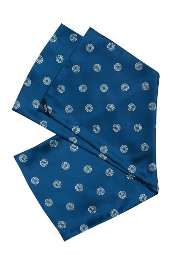 Dubbelsydd sidenscarf i 100% djupblå skimrande Italiensk siden. Dughults egen symbol i runda små prickar. Mått 130cm x 23cm. Fin att bara hänga om halsen eller knyta ett varv.