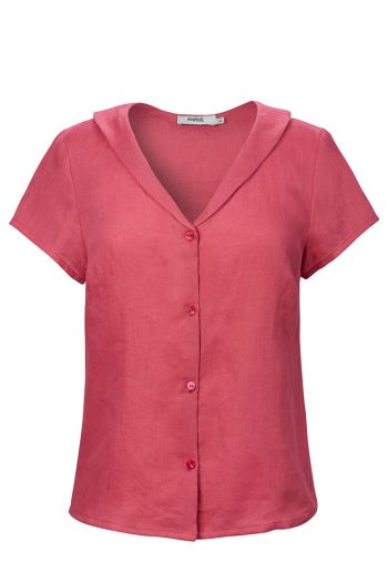 Mimmi blus korall i 100% lin blir lätt en favorit i garderoben! Sjalkrage och vackra små pärlemorknappar mitt fram.