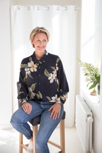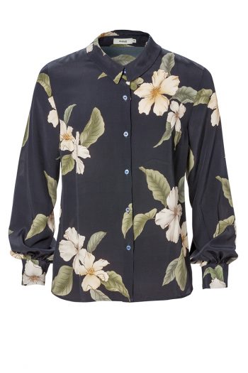 Gina blus hibiskus är alldeles ljuvlig med sin rosa färg och vackra målade hibiskus. Printet är Dughults eget och finns att fynda endast hos oss.
