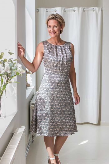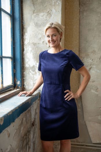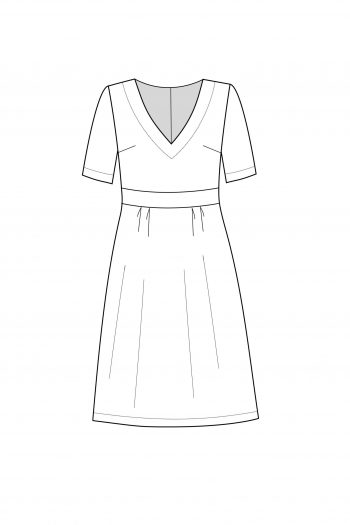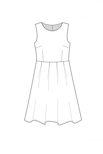 Maja klänning är en av Dughults riktiga klassiker. Klänningen är vackert a-linjeformad och med rundad hals och slutar vid knät. Detta mönster finns både i digital och pappersform.