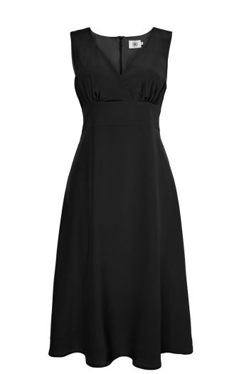 Alice klänning är en klassisk favorit med avskuret liv i midjan och dragkedja mitt bak. Klänningen är v-ringad och utan ärm. Lika fin i tunnare siden som ett kraftigare ulltyg.