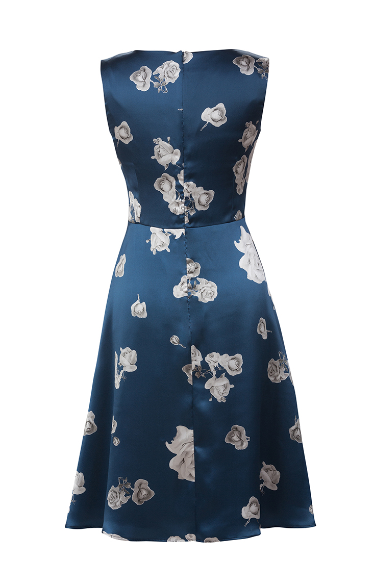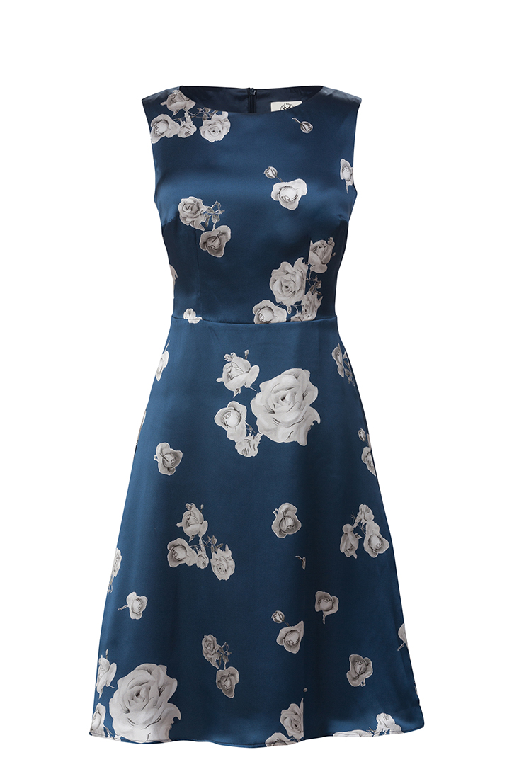 Abigail klänning har en klassisk skärning i midjan med en vacker rundad hals. Här i en skimrande Italiensk blå siden med ett mjukt foder i cupro och dragkedja i ryggen. Klänningen är ärmlös och har en vid kjol som slutar nedanför knät. En klänning att känna sig fin i både sommar och vinter. Tillverkad på vår fabrik i Sverige för en hållbar framtid! Titta i vår storleksguide för din rätta storlek.