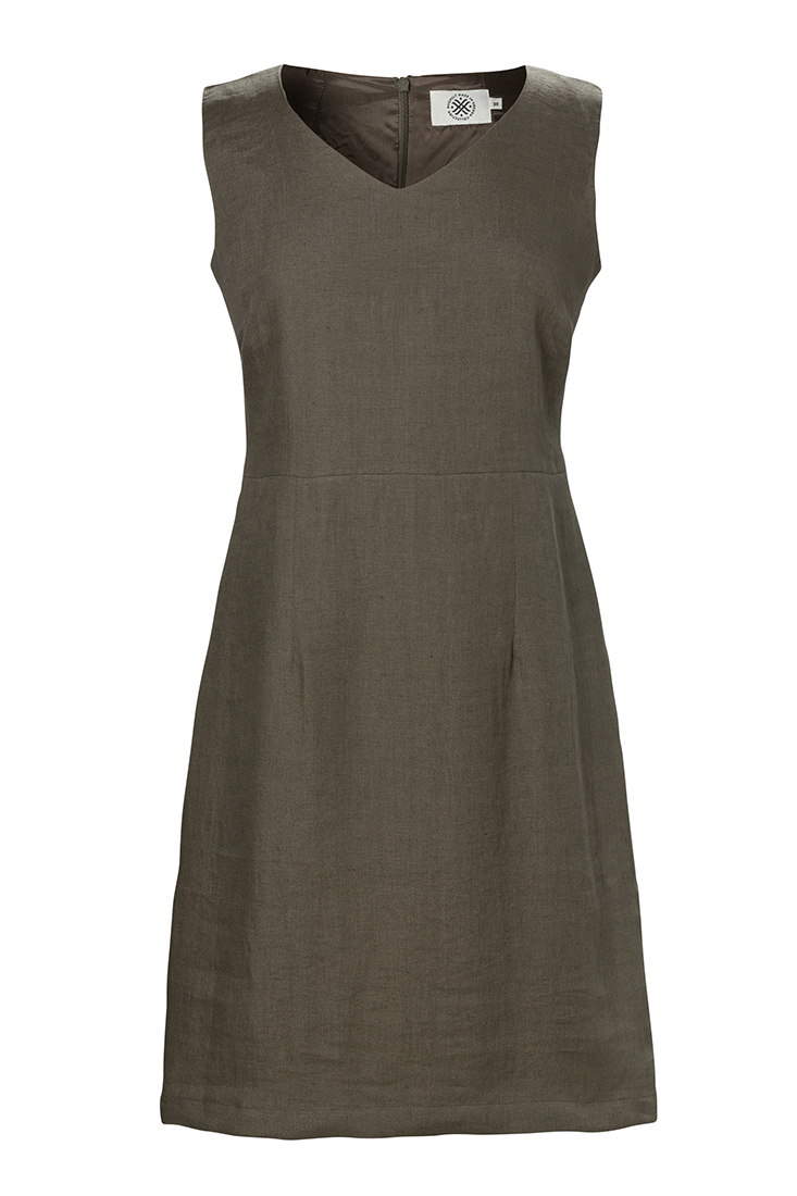 Alice klänning är tillverkad i 100% Italiensk lin och har en mycket vacker olivgrön färg. Modellen är en av våra absoluta favoriter. Klänningen är helfodrad i mjuk cuptro med dragkedja mitt bak. Lätt v-ringad, utan ärm. Lika användbar på sommar som vinter. Matcha gärna tillsammans med Lotta linnekavaj. Tillverkad på fabrik i Sverige för en hållbar framtid!