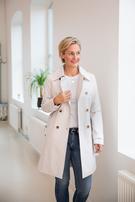 Anna trenchcoat är Dughult’s klassiska vårkappa med skärp i midjan och djupa härliga fickor. Tillverkad av fin italienska bomullsstretch som är lätt coatad (vattenavstötande beläggning) och med ett vackert