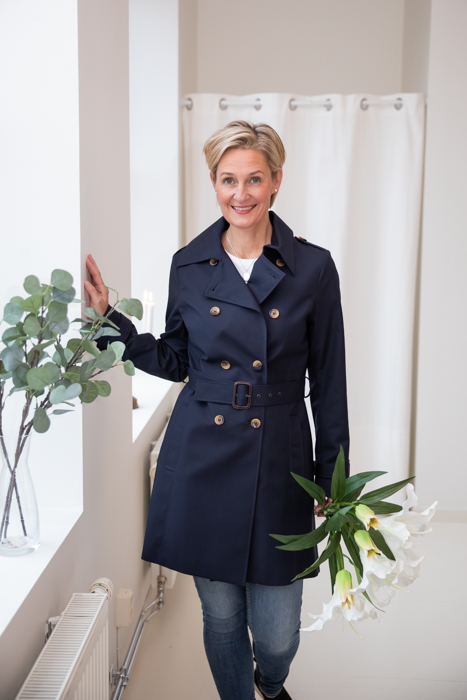 Anna trenchcoat är Dughults klassiska vårkappa med skärp i midjan och djupa härliga fickor. Tillverkad av fin italiensk bomullsstretch som är lätt coatad (vattenavstötande beläggning) och med ett vackert satinfoder som går ton i ton. Lätt att variera mellan låg eller hög krage. En kappa som du har många år i din garderob. Väljer du mellan två storlekar välj den största. Tillverkad i Sverige för en hållbar framtid.