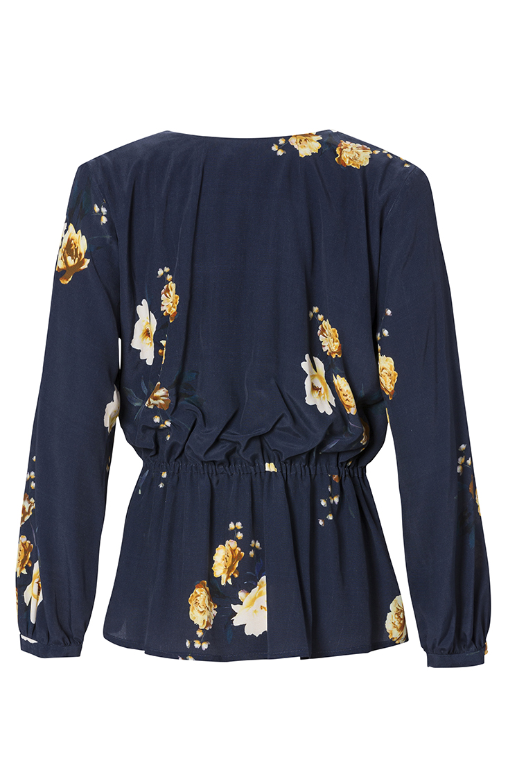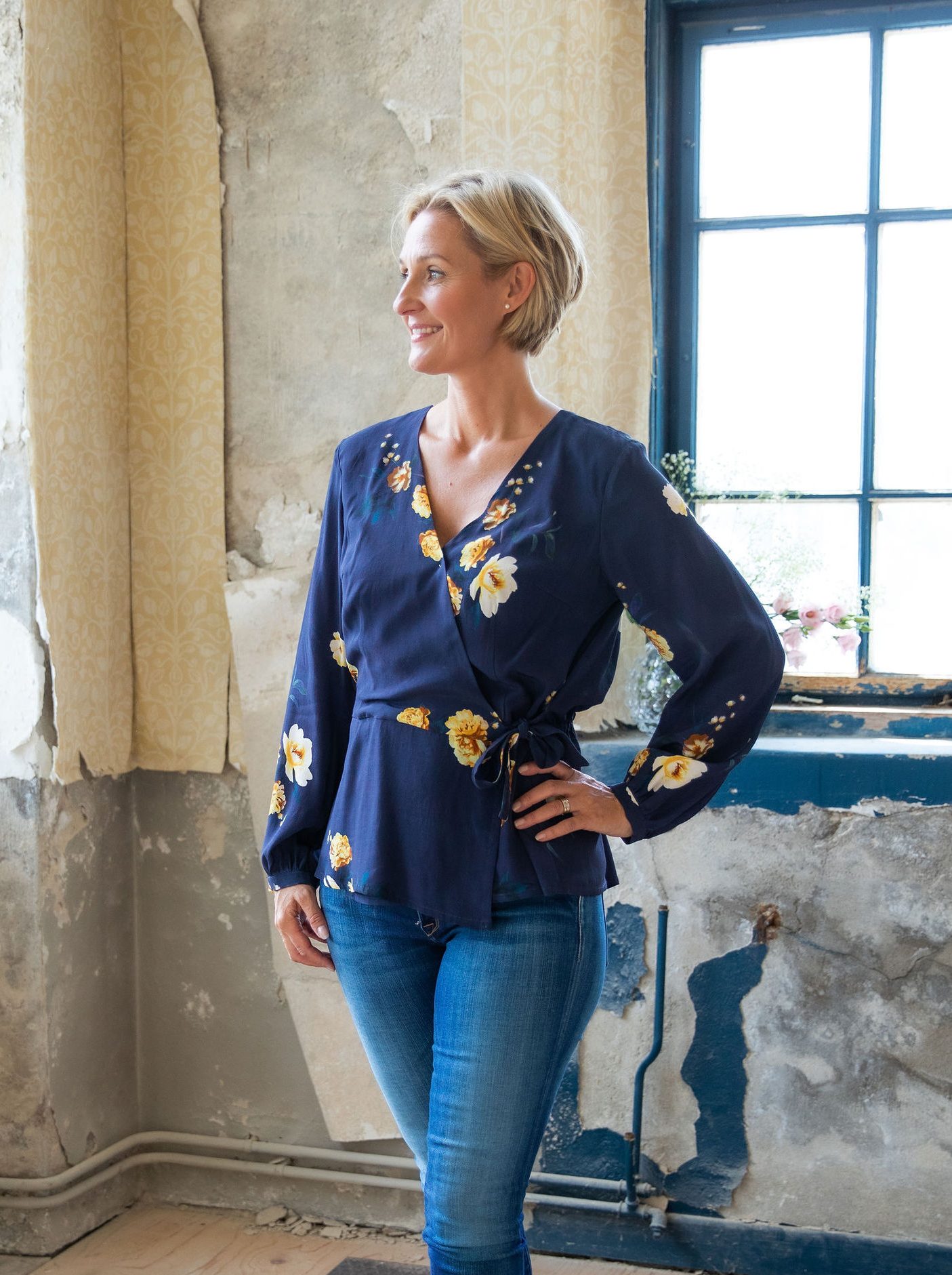 Annie overlap blouse in 100% viscose is an easy-to- wear blouse both on a weekday or for that special occasion. Yellow flowers printed on a dark blue bottom. The blouse has a low neck, great combination with a thin white singlet underneath. Wear it together with our dark blue velvetskirt Christina, or your favorite pants. Made in Sweden for a sustainable future! Please check our size chart to find your perfect fit.
