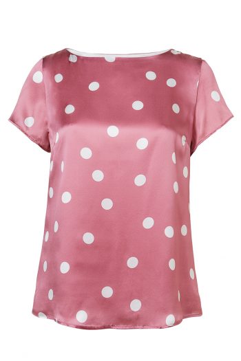 Lovely Mia blouse has a nice v-neck with pleats in the middle of the front. The blouse has a short sleeve and a few small folds in the back for extra comfort.