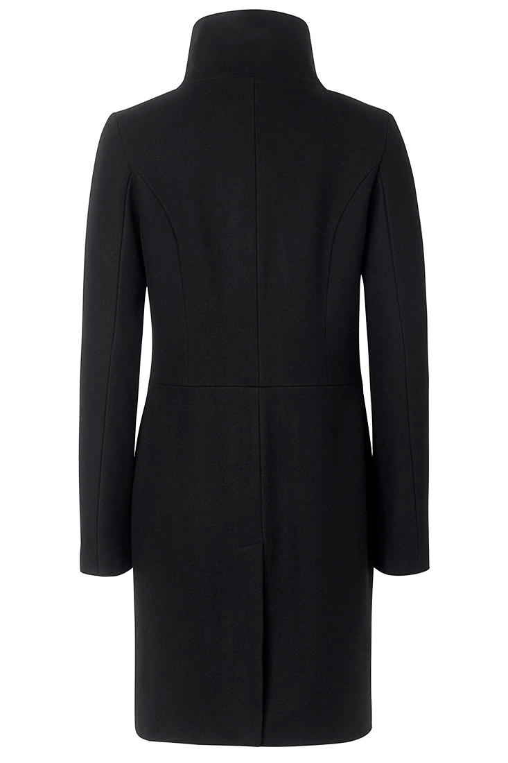 Britta ullkappa är gjort i 100% melton ull. En tät och mycket fin kvalitet som både står emot vind och vatten i vårt nordiska klimat. Här i svart med härlig hög krage som du både kan vika ner eller knäppa hela vägen upp i halsen. Kappan är formsydd vilket gör att den formar sig kvinnligt på kroppen. Väljer du mellan två storlekar så välj den större.