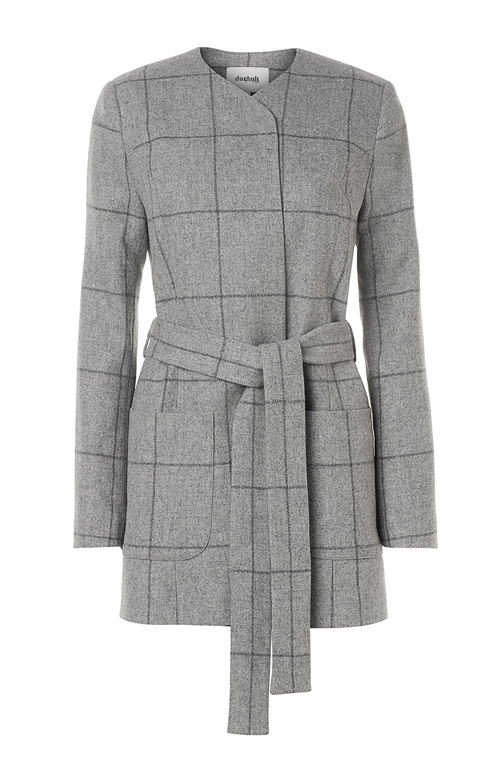 Camilla ullkappa är en tuff, lite kortare kappa med två fickor framtill och knytskärp. Tillverkad i 100% mjuk ull, ljust gråmelerad färg med en mörkare grå överruta och ett vackert skimrande ljusgrått satinfoder. En vårkappa att älska. Tillverkad i Sverige för en hållbar framtid.