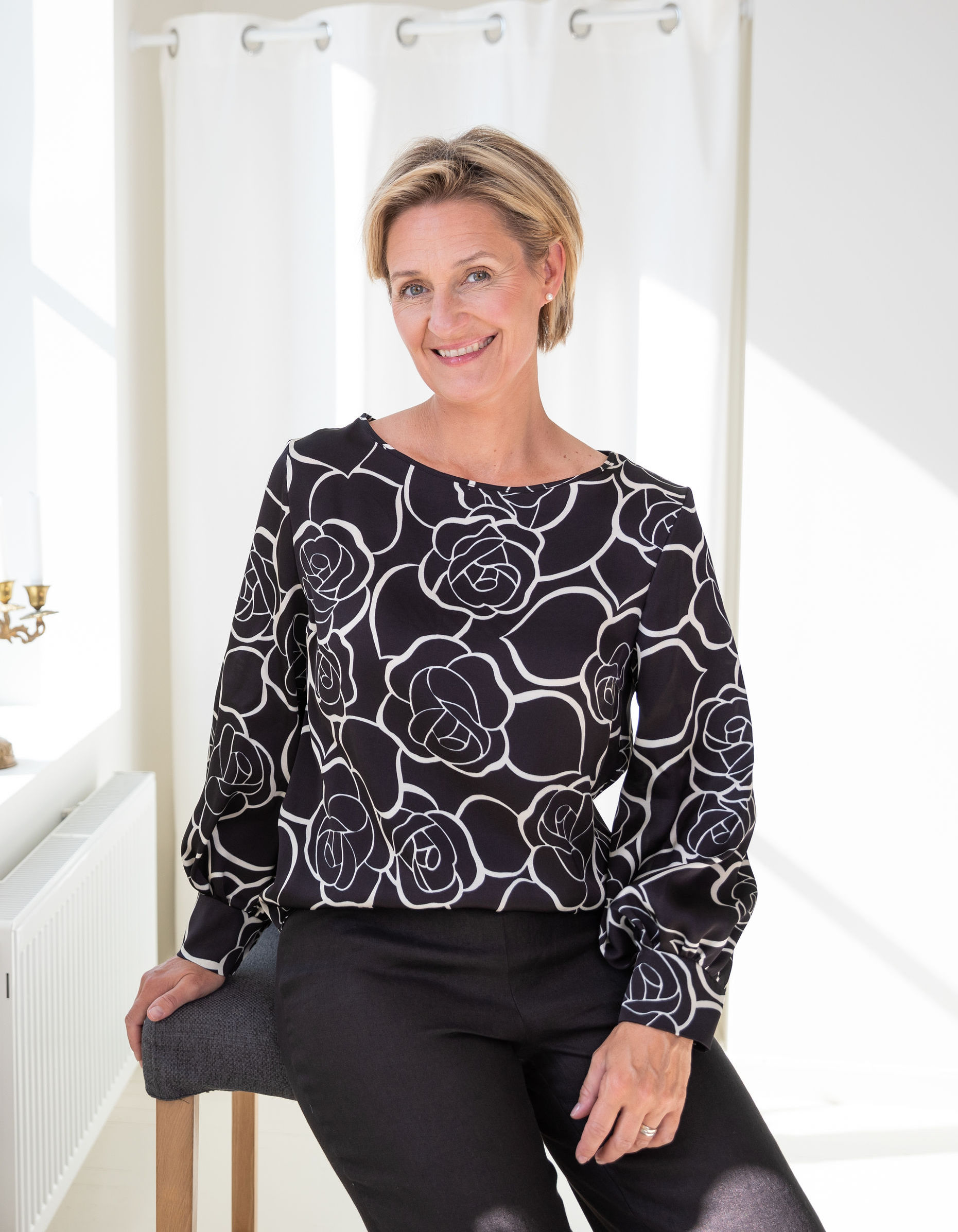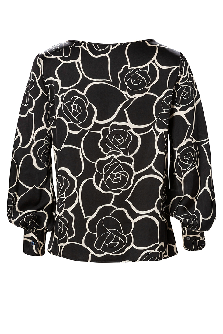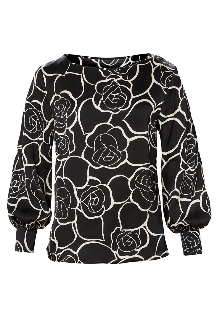 Gina blus är gjord i en lite lyxigare fransk viskos. Blusen har en båtringad hals med en hellång ärm och enkel manschett. Magic är ett snyggt minimalistiskt print som är användbar både till finbyxa och jeans. Den här blusen gör dig fin både på jobbet och festen. Tillverkad på fabrik i Sverige för en hållbar framtid! Titta in i vår storleksguide för att hitta din rätta storlek.