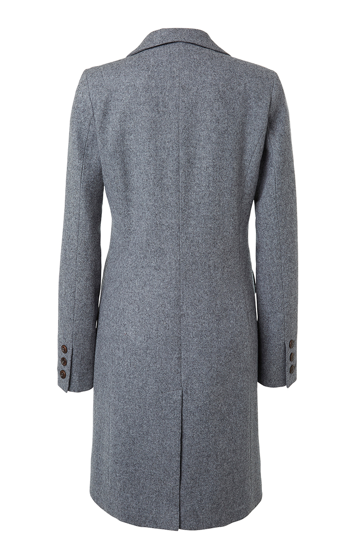 Ingrid ullkappa är gjort i 100% melton ull. En tät och mycket fin kvalitet som både står emot vind och vatten i vårt nordiska klimat. Här i en härlig ljusare grå färg med klassiska slag på kragen. Kappan är formsydd vilket gör att den formar sig kvinnligt på kroppen.