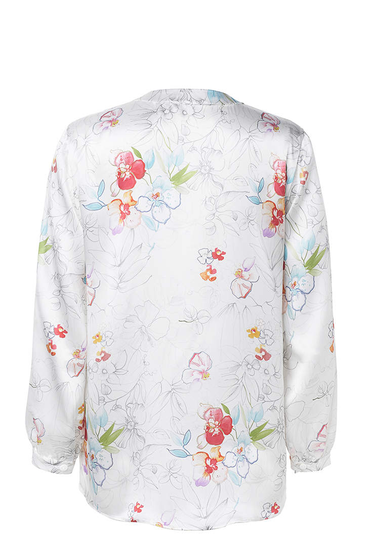Härliga Mia blus har en fin v-ringning med veck mitt fram. Blusen har en kort ärm och några små veck i ryggen för extra komfort. Blusen passar lika bra till byxa som kjol.