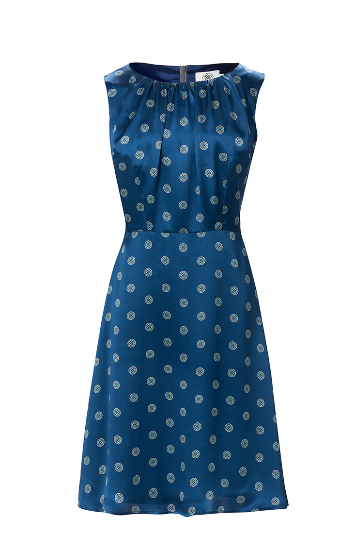 Linn klänning här i Dughults eget print i form av små prickar på en vacker koboltblå botten. Tillverkad i Italiensk siden med vacker drapering upptill på livet. Den här modellen har blivit en favorit hos våra kunder och är numera återkommande i våra kollektioner. Klänningen är helfodrad med dragkedja i ryggen. Tillverkad på vår fabrik i Sverige för en hållbar framtid! Titta i vår storleksguide för din rätta storlek.