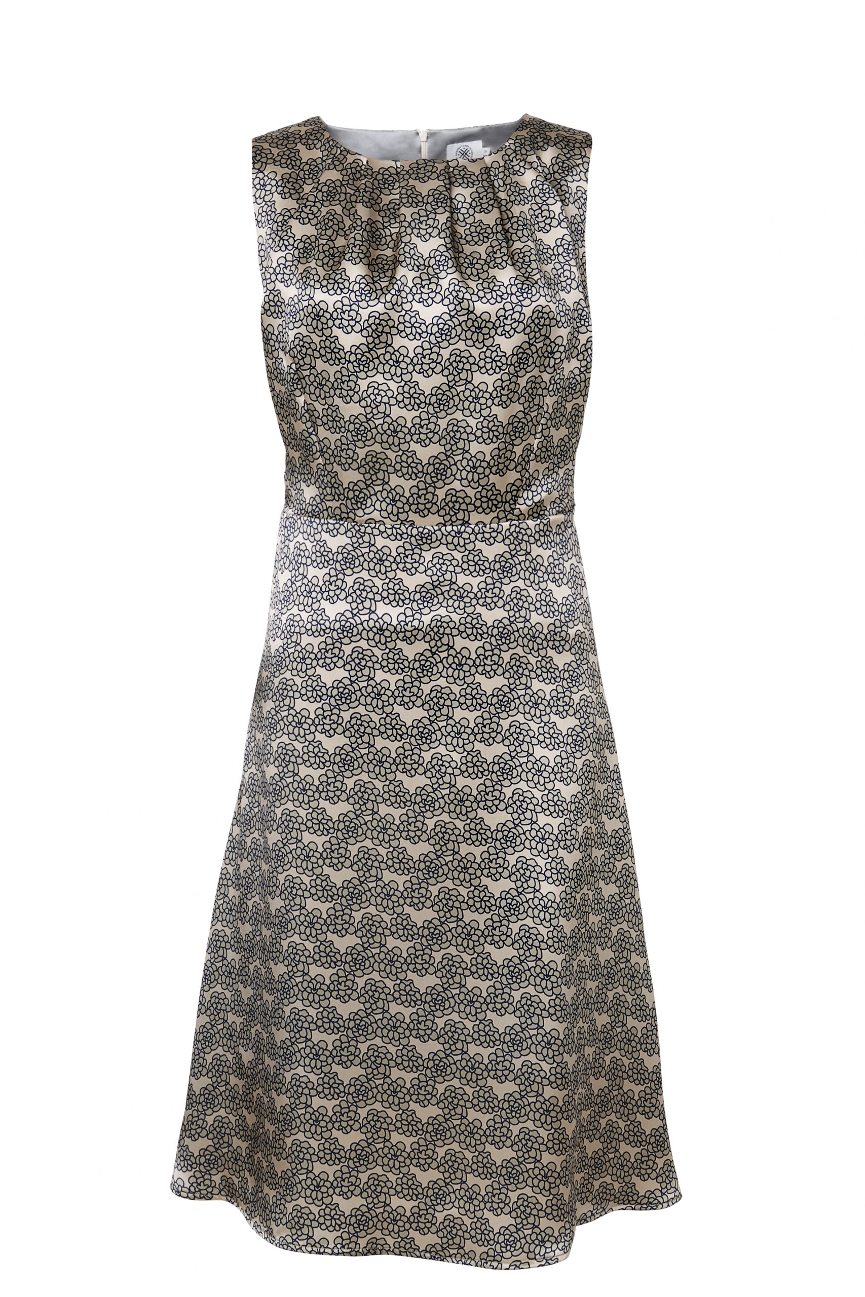 Aprilia klänning är en klassisk modell och favorit i Dughults sortiment. Klänningen har ett vackert skuret liv med vid kjol och motveck i kjolen.