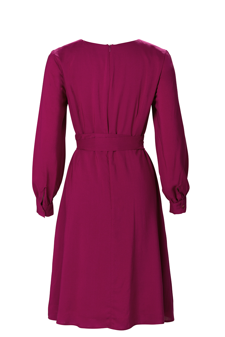 Vackra Madeleine klänning i en vacker och färgglad fuchsia på en lite tunnare viskos. Klänningen har hellång ärm och ett knytband i midjan som går att vira ett eller två varv. Helfodrad i mjuk cupro, dragkedja mitt bak och med ett vackert fall i kjolen. En klänning att bära både till vardag och fest. Tillverkad på vår fabrik i Sverige för en hållbar framtid! Titta i vår storleksguide för din rätta storlek.