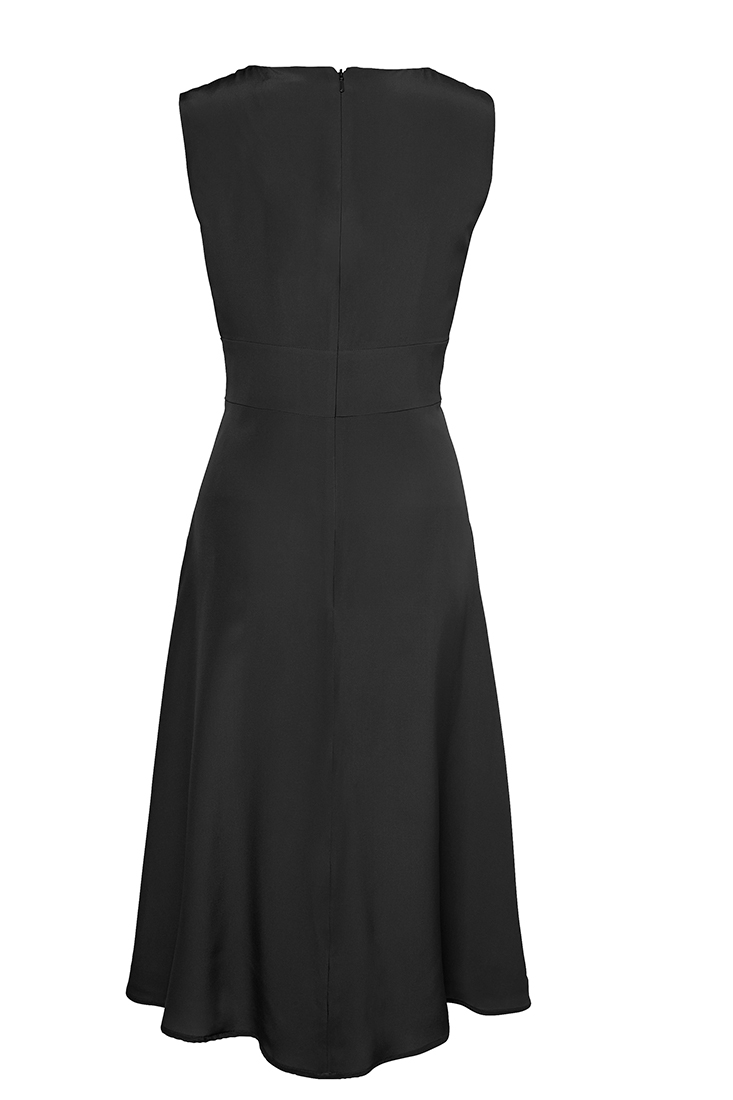 Sofia klänning är gjord i en vacker Italiensk svart sidencrepe. Klänningen är a-linjeformad med ett löst skärp i midjan. En klänning som är användbar vid många tillfällen.