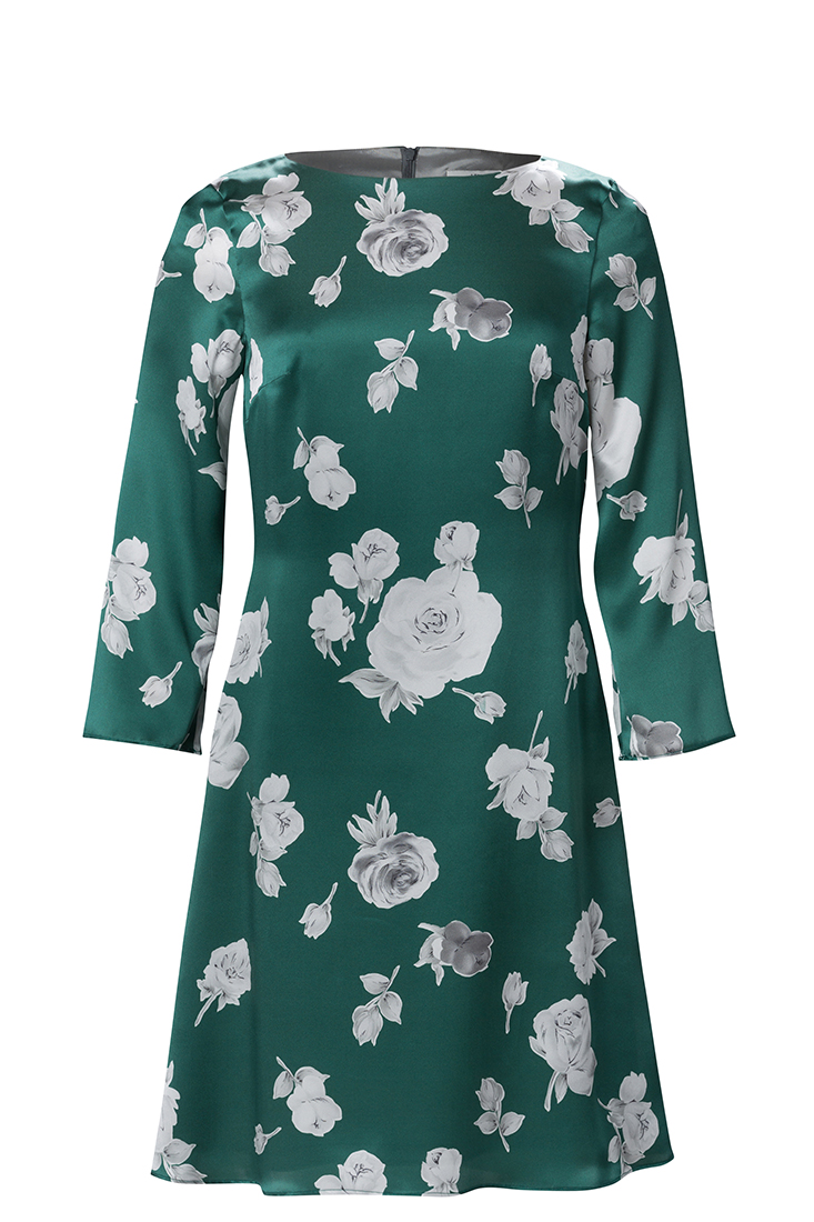 Maja klänning är en av Dughults klassiker. Klänningen är vackert a-linjeformad och med rundad hals och slutar vid knät. Här kan du välja mellan ¾ ärm eller ärm med volang. Klänningen har en fint formad byst och dragkedja mitt bak. Maja klänning kan bli din favorit i basgarderoben eller finklänning för fest beroende på val av tyg.