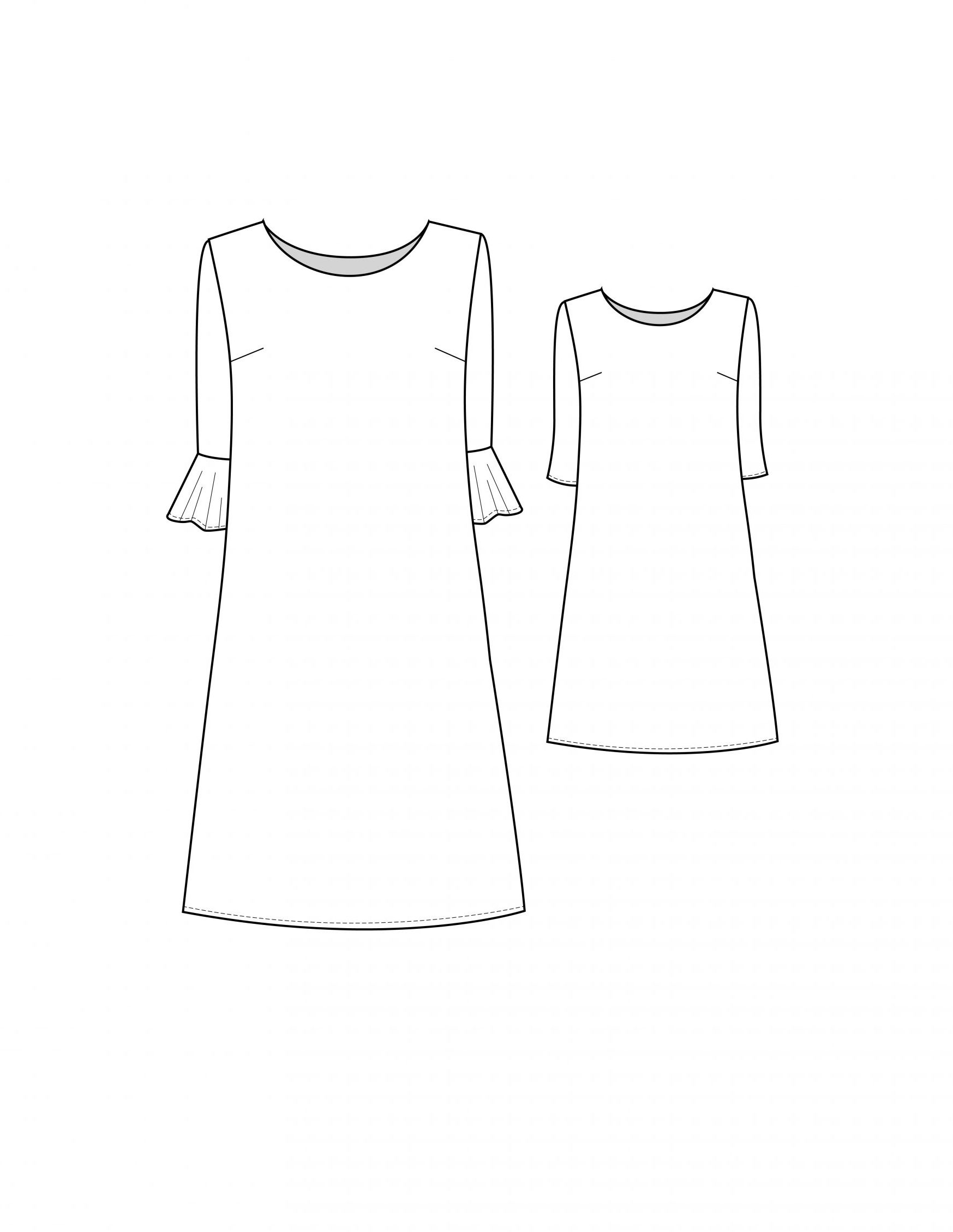 Maja klänning är en av Dughults riktiga klassiker. Klänningen är vackert a-linjeformad och med rundad hals och slutar vid knät. Detta mönster finns både i digital och pappersform.