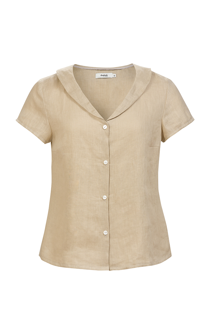 Mimmi blus i 100% lin blir lätt en favorit i garderoben! Här i en vacker beige färg med sjalkrage och vackra små pärlemorknappar mitt fram. Passar lika bra till din favorit Dughult-kjol som till ett par jeans. Tillverkad i Sverige för en hållbar framtid!