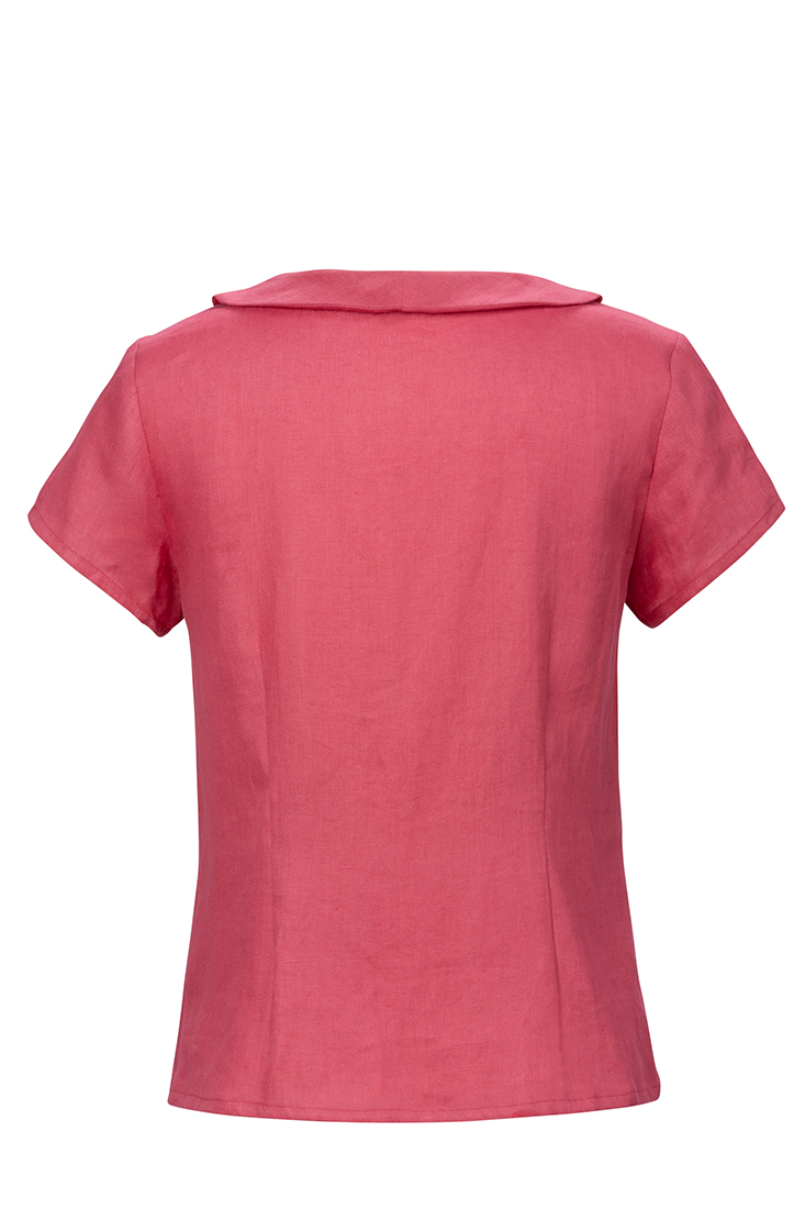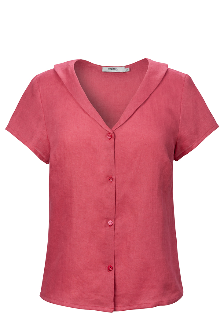 Mimmi blus korall i 100% lin blir lätt en favorit i garderoben! Sjalkrage och vackra små pärlemorknappar mitt fram. Här i en vacker korallfärg. Passar lika bra till din favorit Dughult-kjol som till ett par jeans. Tillverkad i Sverige för en hållbar framtid!