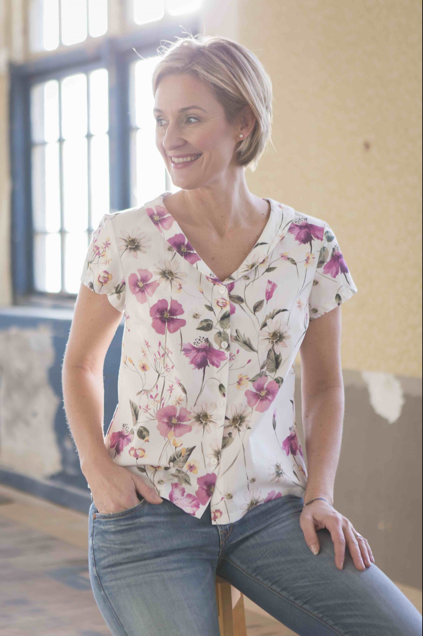 Absolutely lovely is our Mimmi blouse in 100% cotton poplin with shawl collar and cute little mother-of-pearl buttons. Can be used together with one of Dughult’s skirts or for a pair of jeans. Made in Sweden for a sustainable future.
