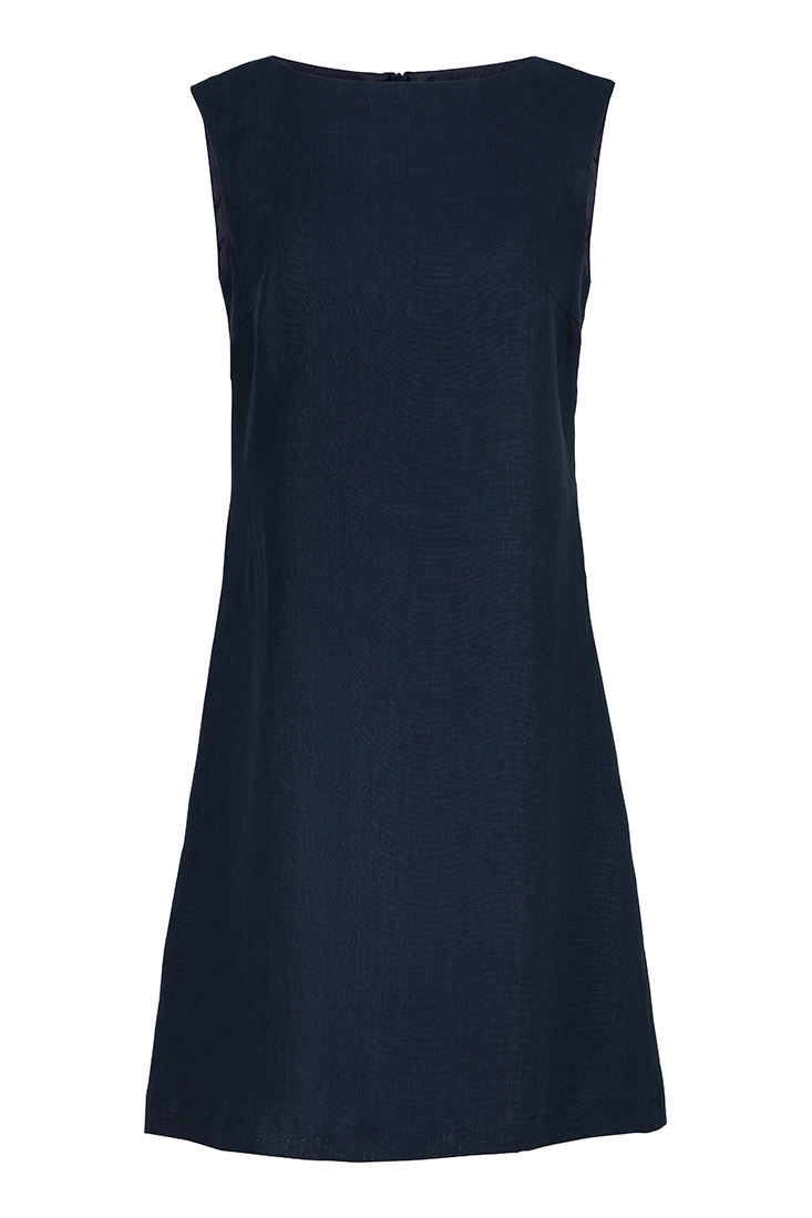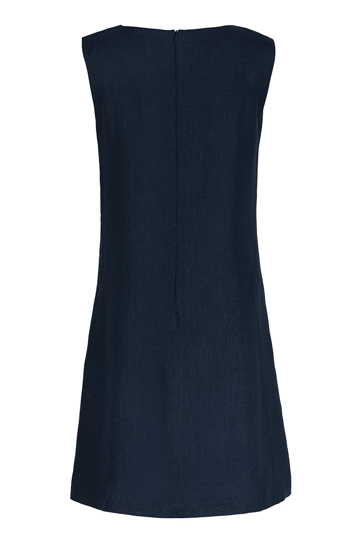 Mimmi klänning är en linneklänning med enkelt snitt, bra passform och fantastisk kvalitet. Här i 100% italienskt blått linnetyg, helfodrad med dold dragkedja bak. För en cool och smart look. Snygg både på festen eller semestern. Stylas med fördel av en vacker Dughult sidenscarf. Tillverkad på fabrik i Sverige för en hållbar framtid!