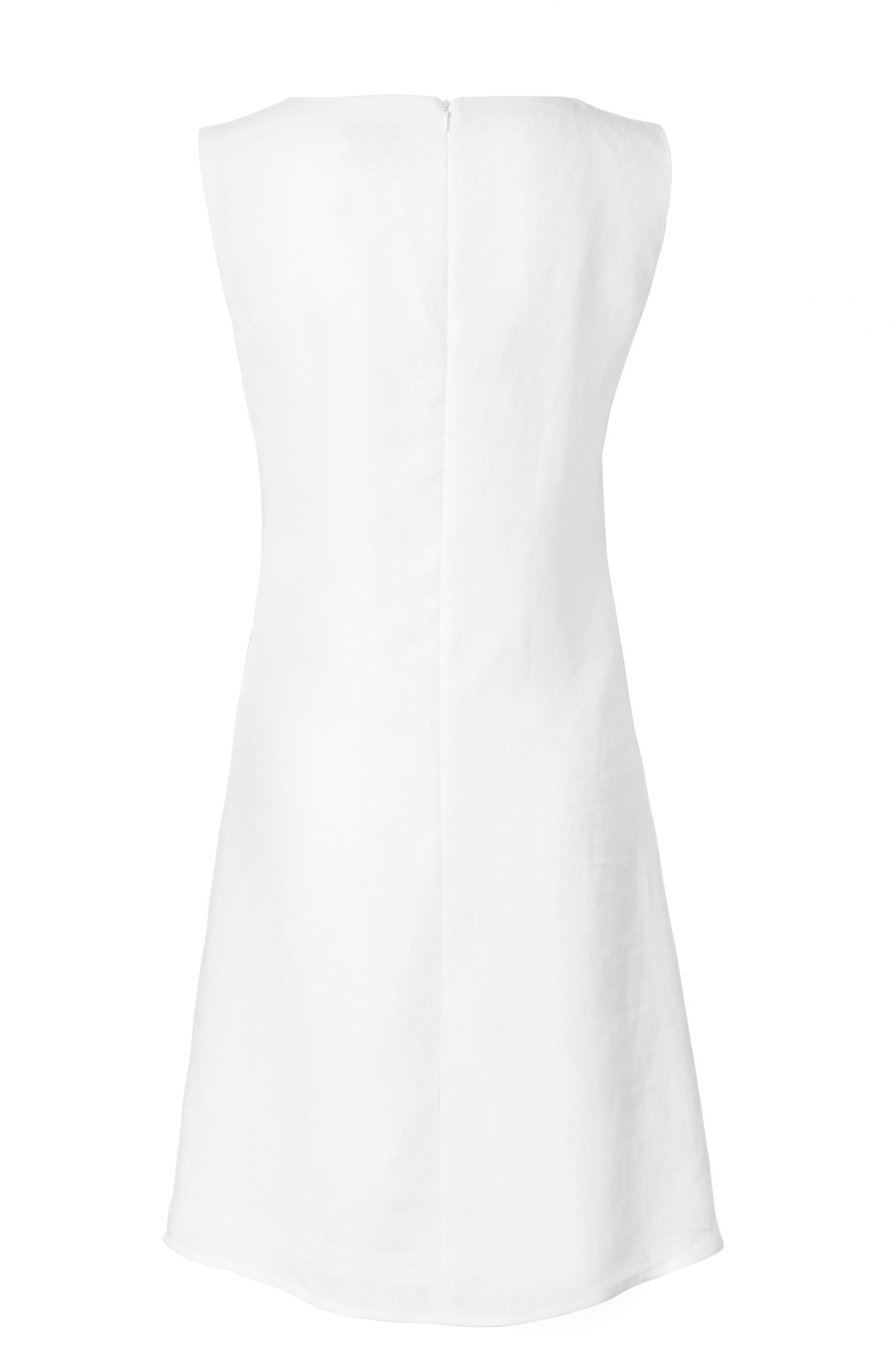 Mimmi klänning är en linneklänning med enkelt snitt, bra passform och fantastisk kvalitet. Här i 100% italienskt vitt linnetyg, helfodrad med dold dragkedja bak. För en cool och smart look. Snygg både på festen eller semestern. Stylas med fördel av en vacker Dughult sidenscarf. Tillverkad på fabrik i Sverige för en hållbar framtid!