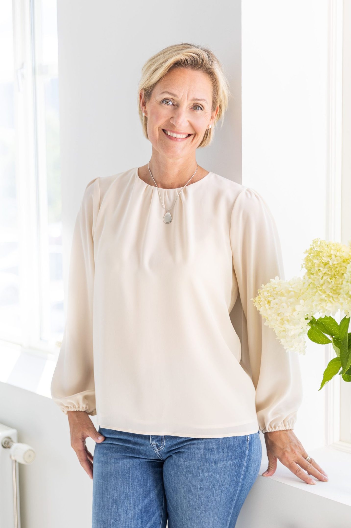Paula sidenblus offwhite