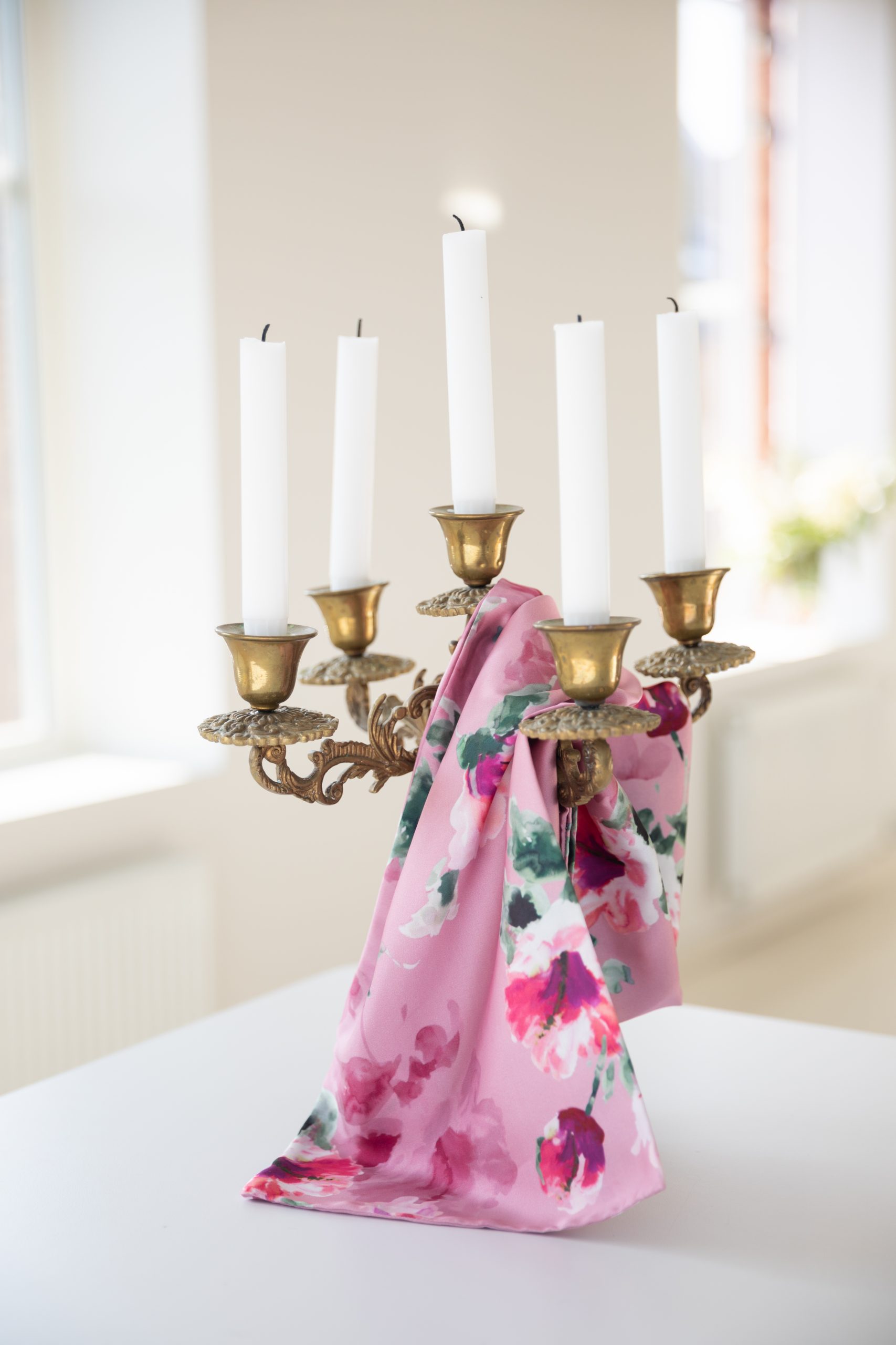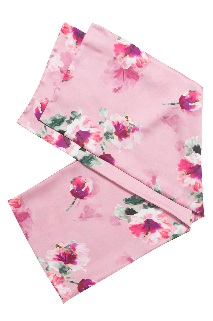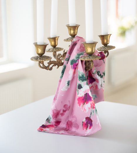 Dughults vackra, dubbelsydda sidenscarf i 100% Italiensk siden. Vårt eget hibiskus print på en underbar rosaskimrande botten. Måtte 130cm X 23cm. Fin att bara hänga om halsen eller knyta ett varv. Jättefin med till både kavaj, klänning och kappa. Tillverkad på fabrik i Sverige för en hållbar framtid!