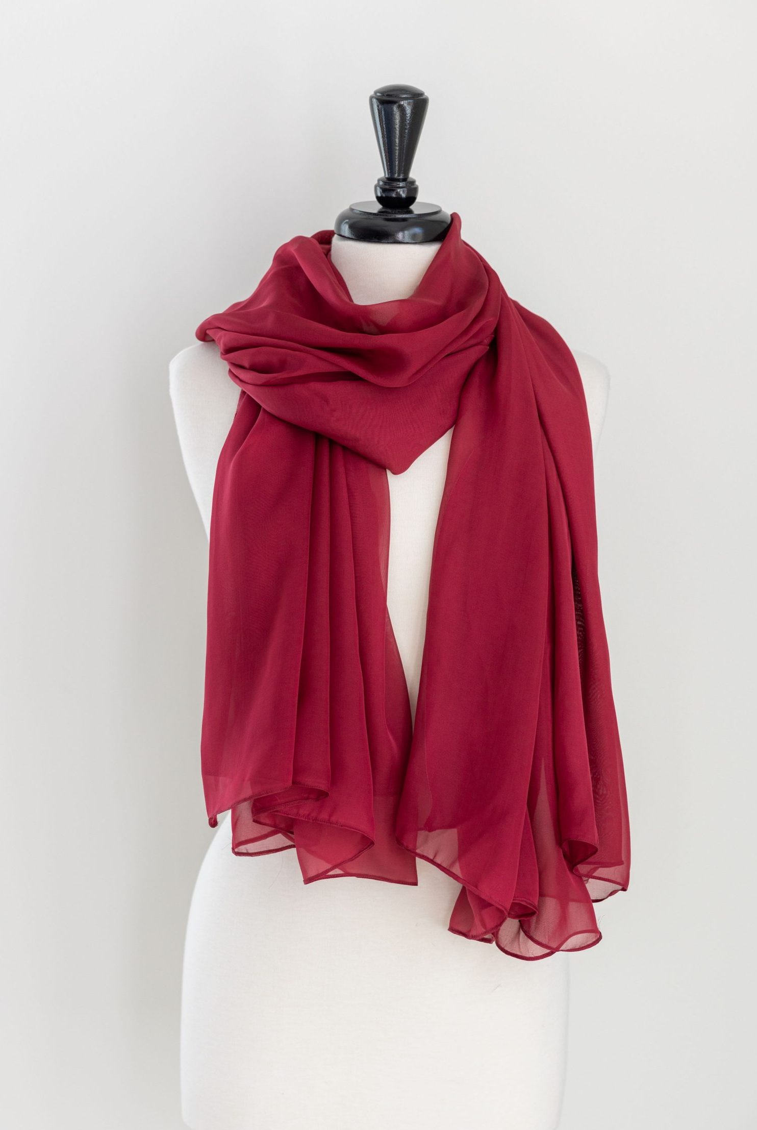 Otroligt vacker och användbar scarfs eller sjal i röd sidenchiffong. Perfekt att vira runt axlarna istället för en jacka eller kavaj. Siden värmer på vintern och kyler på sommaren. Finns i olika färger, här i en vacker blodröd. Sydd på fabrik i Sverige för en hållbar framtid!