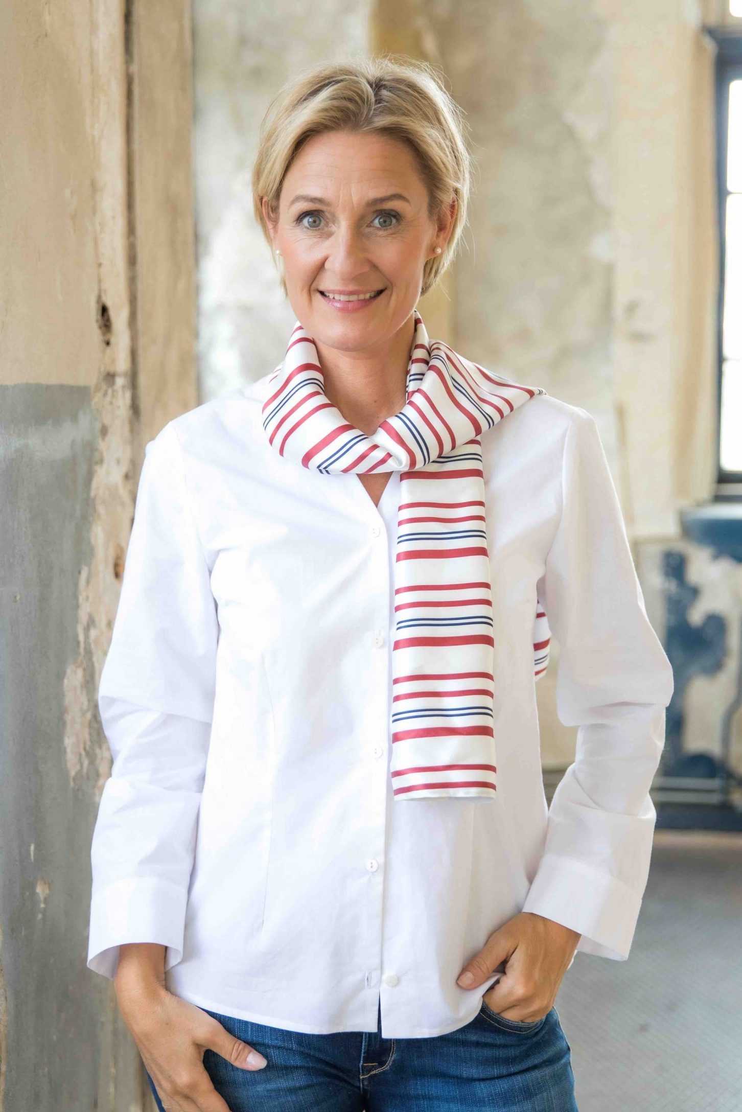 Dubbelsydd sidenscarf i 100% vacker rand på skimrande Italiensk siden. Mått 130cm x 23cm. Fin att bara hänga om halsen eller knyta ett varv. Kan med fördel matchas med antingen klänning, kjol eller kappa. Tillverkad på fabrik i Sverige för en hållbar framtid.