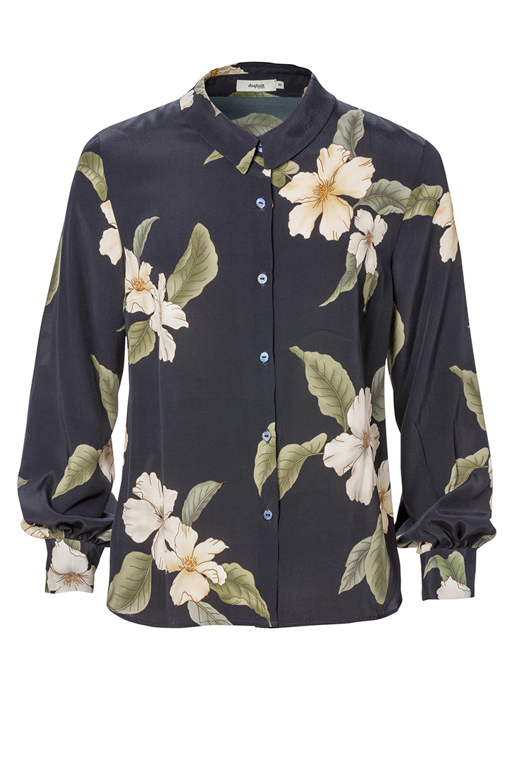 Vega blus paradis är tillverkad i en härlig tunn viskos med marin botten och vackra färgglada blommor. Blusen har en klassisk krage med knäppkant fram och vanlig manschett med pärlemorknapp. Superfin till jeans eller kjol. Väldigt användbar då den passar både på kontoret och på festen. Tillverkad på fabrik i Sverige för en hållbar framtid! Titta i vår storleksguide för att hitta din rätta storlek.