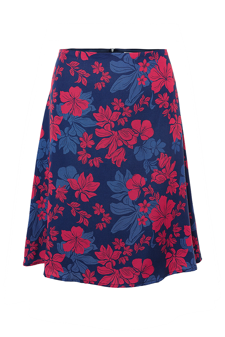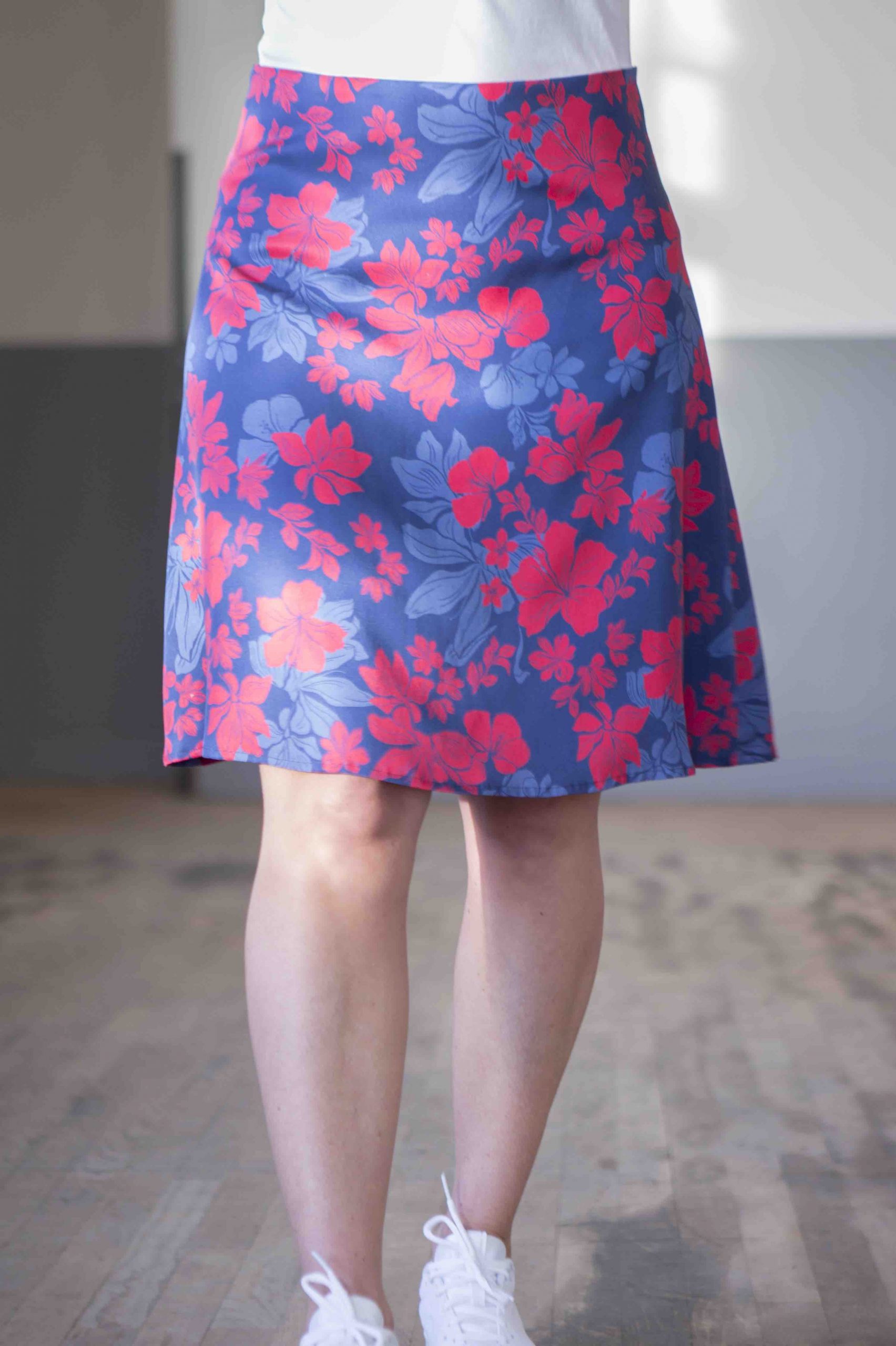 Yvonne skirt is slightly bell-shaped without a waistband with a nice lining in cupro and zipper in the middle of the back. Sewn in a beautiful tencel with stylish flowers on a marine background. Fits nice together with Mimmi blouse linen. Made in Sweden for a sustainable future!